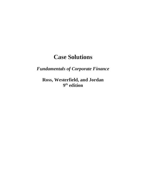 Online PDF CORPORATE FINANCE ROSS 9TH EDITION CASE SOLUTIONS Doc Gutenberg